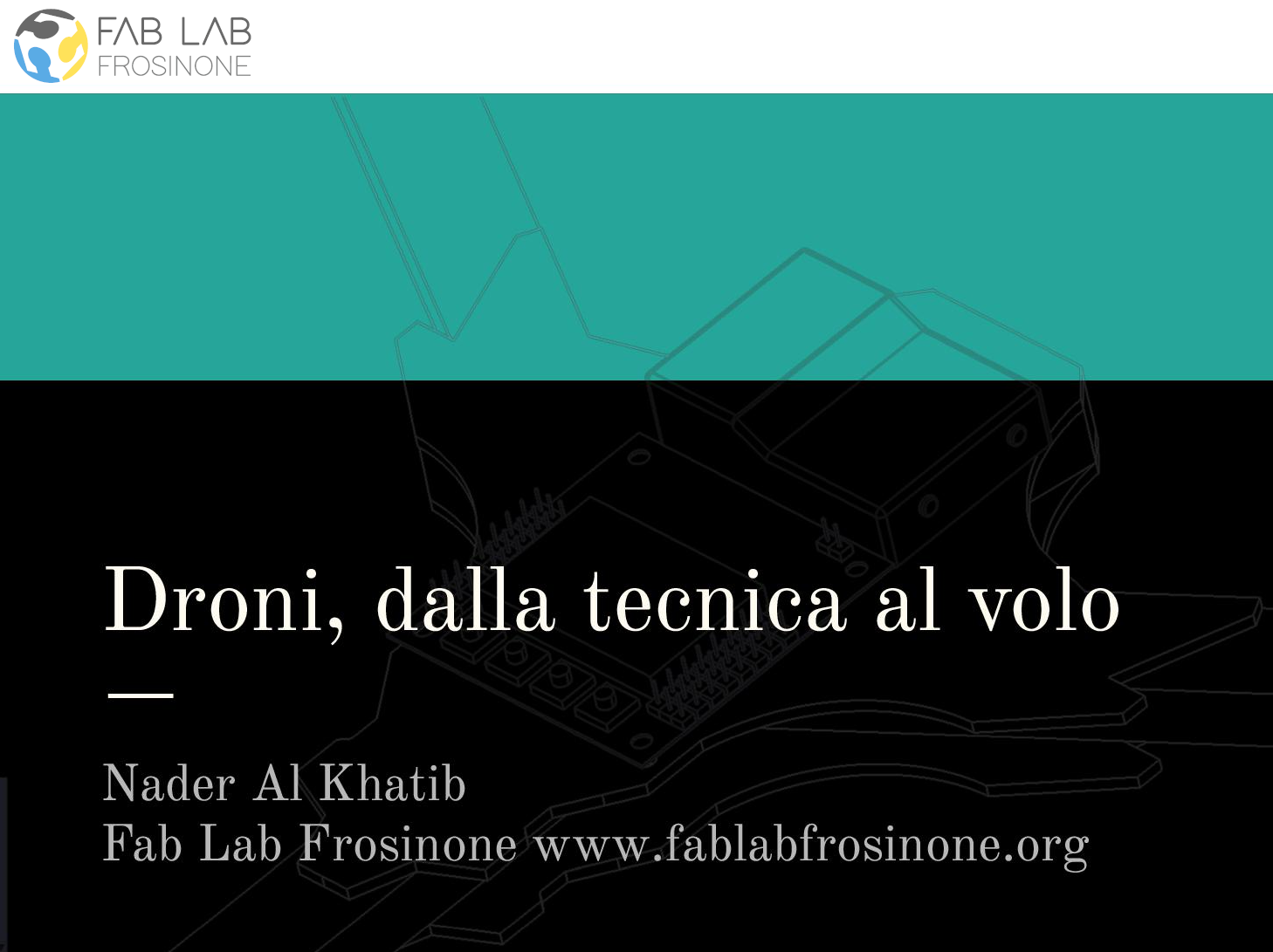 Questo WorkShop vi guiderà nel processo produttivo di un Drone Multi-Rotore.Nel corso delle sessioni riconosceremo i componenti di un drone, ne comprenderemo il funzionamento, acquisiremo le nozioni di diagnosi e risoluzione e ne governeremo le operazioni di volo.